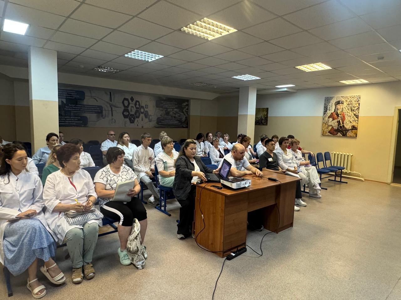 4 июня 2025 года в КГП на ПХВ "Районная больница района Магжана Жумабаева" состоялся семинар-совещание, посвящённый вопросам диагностики и раннего выявления туберкулеза среди детей и подростков. Спикерами мероприятия выступили руководитель районной санитарно-эпидемиологической службы Шонтаев И.Б. и врач-фтизиатр Турленова А.Н. В рамках встречи были обсуждены современные подходы к раннему выявлению туберкулеза, алгоритмы диагностики и важность межведомственного взаимодействия в борьбе с этим заболеванием среди детского и подросткового населения. Особое внимание было уделено вопросам профилактики, важности регулярных медосмотров, а также повышению информированности среди родителей и педагогов. Участники семинара отметили актуальность темы и выразили заинтересованность в дальнейшем проведении подобных мероприятий.
