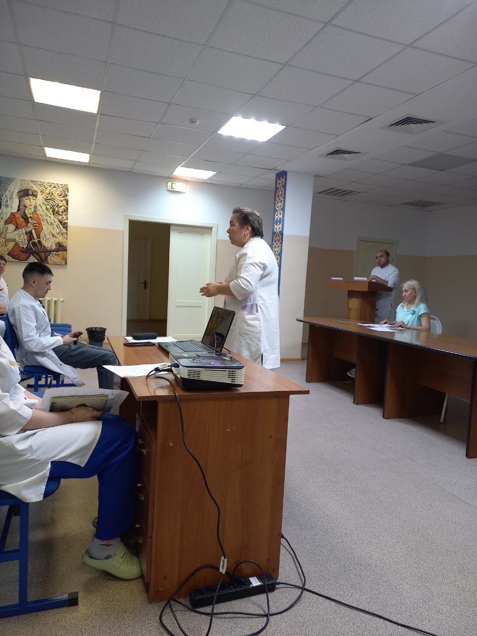 25 июня 2025 года в КГП на ПХВ «Районная больница» района Магжана Жумабаева состоялся семинар на тему: «Современные подходы к диагностике и лечению заболеваний системы кровообращения». Целью мероприятия стало повышение уровня профессиональной подготовки медицинских работников первичного звена и совершенствование качества оказания медицинской помощи пациентам с сердечно-сосудистыми заболеваниями. В работе семинара приняли участие врачи общей практики, терапевты и фельдшера медицинских организаций района. С докладом выступила врач-терапевт Сапарова Б.Я., которая осветила актуальные вопросы диагностики и лечения гипертонической болезни, ишемической болезни сердца и хронической сердечной недостаточности в соответствии с современными клиническими рекомендациями. Особое внимание было уделено вопросам раннего выявления и профилактики сердечно-сосудистых заболеваний, а также ведению пациентов с высоким сердечно-сосудистым риском. В рамках семинара также был проведён разбор клинических случаев, с которым выступили врачи общей практики Камалитдинов Х.А. и Масерова Ю.Г.. Были рассмотрены реальные примеры из повседневной практики, проанализированы тактики ведения пациентов, даны рекомендации по ведению сложных случаев и акцентировано внимание на важности мультидисциплинарного подхода. Проведение подобных мероприятий способствует повышению квалификации медицинских работников, обмену опытом и внедрению в практику современных подходов к лечению и профилактике заболеваний системы кровообращения.
