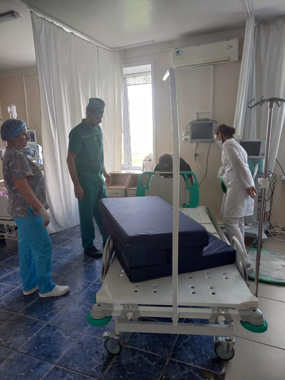 Улучшение материально-технической базы КГП на ПХВ "Районная больница района Магжана Жумабаева". В рамках повышения качества оказания медицинской помощи и улучшения условий пребывания пациентов в отделение реанимации и интенсивной терапии поступили 2 многофункциональные медицинские кровати. Данные кровати предназначены для ухода за тяжёлыми и маломобильными пациентами, обеспечивая комфорт, безопасность и облегчая работу медицинского персонала. Кровати оснащены электроприводом для регулировки положения тела пациента, боковыми ограждениями, а также функциями, способствующими профилактике пролежней и облегчению проведения лечебных и диагностических процедур.